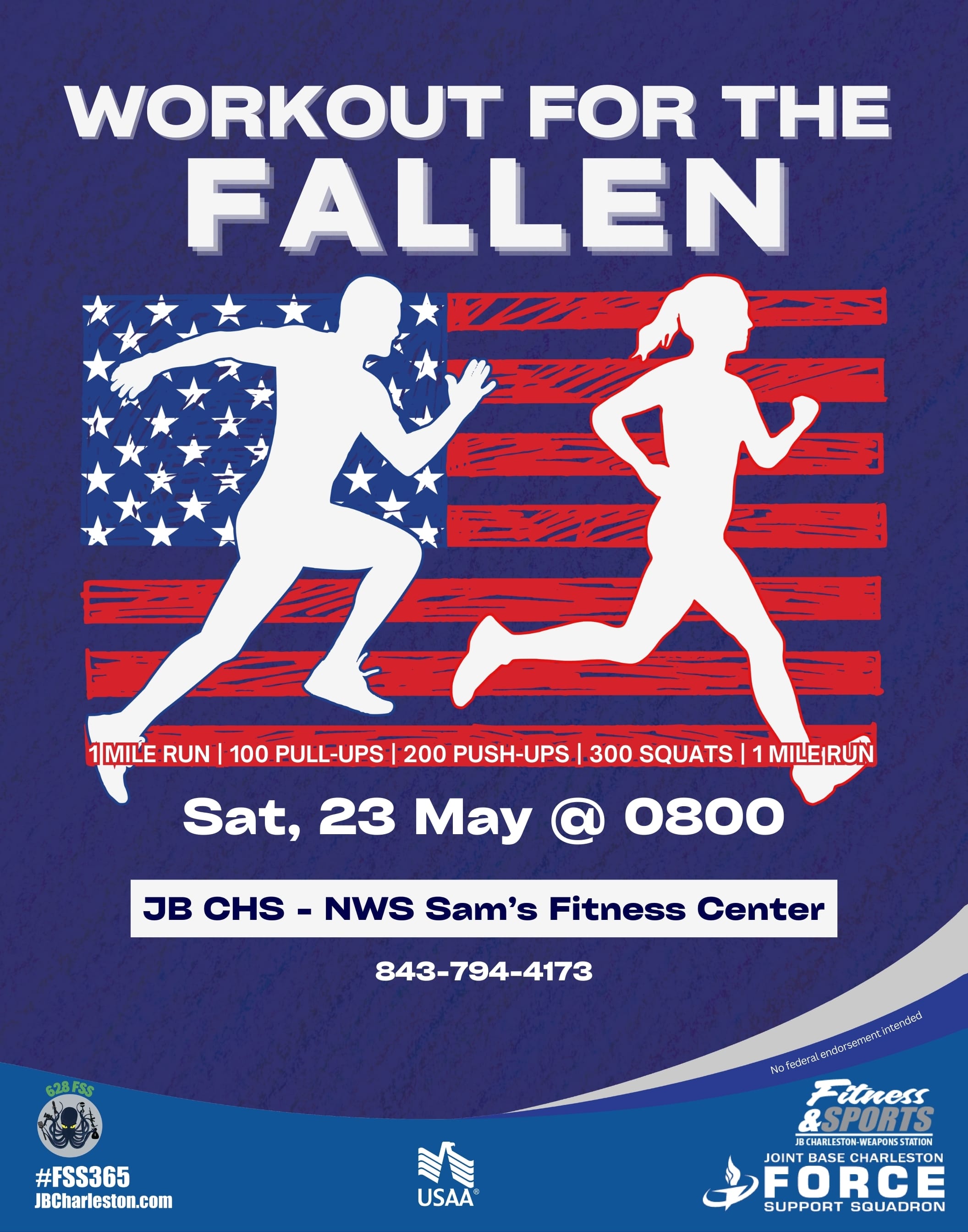 1 mile run, 100 pull ups, 200 push ups, 300 squats, 1 mile run
